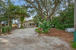 With 1 BR, BA, a private office, spacious laundry/storage rm, and its own kitchenette, the guest cottage is perfect for welcoming family, hosting overnight visitors, or creating a flexible rental opportunity. Shaded by stately oaks and coastal greenery, this oversized cul-de-sac homesite captures the timeless beauty and relaxed character of Old Florida living. Whether you are looking for a full-time home or a laid-back beach getaway, this charming coastal retreat is ready for you! Flood Zone X offers peace of mind and no flood insurance is required.